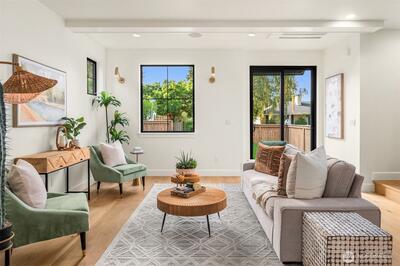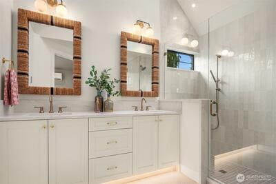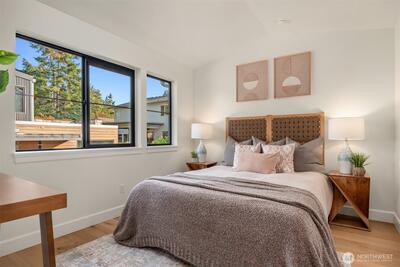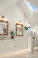 NEW MUST-SEE Cottage in West of Market! Located just a few steps from Juanita Bay Park & Boardwalk, this 2bd/2.5ba charmer by Granger & Co offers uncompromising quality & luxurious comfort with meticulously curated design. Bright & airy open concept great room boasts butlers bar and sliding doors that open to the patio & fully fenced yard. Gorgeous Chef's kitchen features quartz counters, Bedrosian tile, Belmont cabinets, & top-of-the-line appliances. Retreat upstairs to 2 bdrms w ensuite baths - and convenient laundry area. Spacious primary boasts private balcony, walk-in closet & sumptuous bathroom bathed in natural light thru vaulted ceilings & skylights with heated floors, double sinks & stunning fully-tiled shower. EC charging station.