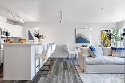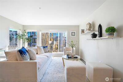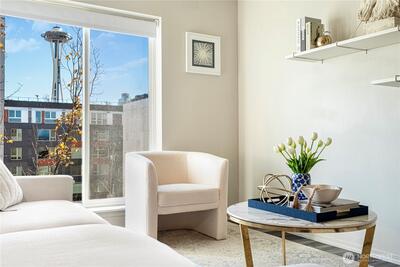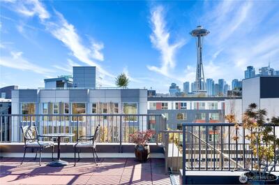 This 1-bedroom offers iconic Space Needle views from the living room and bed room. Updated crisp & clean kitchen with the new stainless appliances. Convenient open layout flows easily into dining & living area. Premier amenities include a rooftop deck w/sweeping view of the Seattle skyline, fitness center, business lounge. Two parking spaces that are included. Just a block from climate Pledge Arena and three blocks to Olympic Sculpture Park. Surround by bars, restaurants and coffees shops. No rent cap, No special assessments.