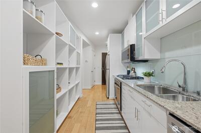 Magical city views from this immaculate, pristine clean studio style home with custom built-in Murphy Bed! Wonderfully designed for maximum efficient living including gorgeous, engineered wood floors through-out & freshly painted. Stunning kitchen with stainless steel appliances, gas cooktop & slab granite countertops. Beautiful white wood vanity with Carrara marble in lovely tile bath. Stack W/D, sec parking & storage too! World class amenities include 24/7 concierge, gym, flex/yoga rm, party rm, spa, steam rm, sauna, pet park & spectacular rooftop deck with BBQ's & lounge seating to soak up the sun! No RENTAL CAP & pets okay! Outstanding location - close to Amazon, PPMkt, Wtrfrnt & new Wtrfrnt Park, dining, shoppg, pub trans & more!