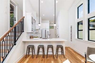 Magnolia Masterpiece of Craftsmanship from Applecore Homes, no detail was overlooked! Bright custom new home built with precision, passion & purpose. From the high-vaulted-ceiling great room to the exterior grounds to the covered roof deck, this is a showcase of thoughtful design & flawless execution. This is real premium living. Top floor has entertaining-size space with super cool exterior deck with heat lamp. Kitchen has large peninsula seating, baths have designer tile & 1-car attached garage off alley has 220 EV charging. Both bedrooms & full bath are on main with level access to yard. Stroll to Met Market, Discovery Park & Mag Village. You will love living here. This is drop-dead gorgeous!