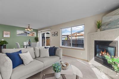 Rare corner residence in Evergreen Ridge, this Townhouse lives like a single-family home with only a small storage-area wall being shared. The main level’s open plan centers on a stainless-equipped kitchen with island and a cozy gas fireplace. Upstairs: 3 bedrooms, 2.5 baths, and a custom built-in desk that makes a perfect home office or study zone. Thoughtful upgrades include a whole-house fan, large kitchen pantry. Outside, enjoy a fully fenced backyard with patio, deck, and dog run. 2-car garage plus driveway parking for two. Across from the association playground and sport court. At ~1,716 sq ft, opportunities at this price point with this feature set are scarce in Graham.