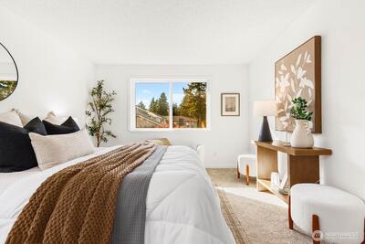 Rare top-floor end unit in a prime Kirkland location! This beautifully updated condo features vaulted ceilings, large windows, and an abundance of natural light. Recent upgrades include new flooring, fresh paint, and modern fixtures. The open-concept living area features a cozy fireplace and opens to a private deck, ideal for relaxing on those cold nights or enjoying fresh air on sunny days. The spacious bedroom offers a large walk-in closet. Two parking spaces provide added convenience to being just moments from The Village at Totem Lake, Evergreen Hospital, shops, restaurants, and transit. Enjoy a well-managed community with no rental cap, perfect for both homeowners and investors.