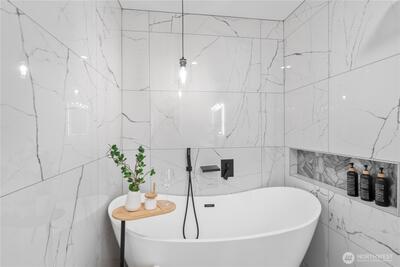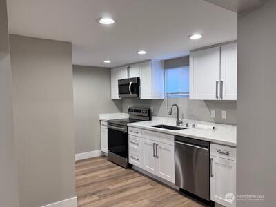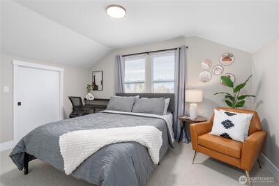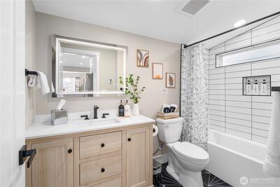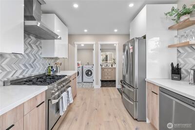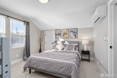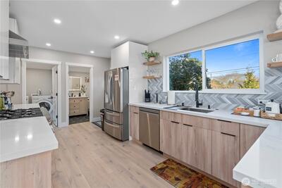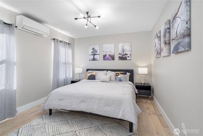 Craftsmanship meets Modern Comfort in this stunning, fully remodeled gem. The 1750sf main residence offers 3 bedrooms/2-heated tile floor bathrooms. Bright open concept living areas on the main floor feature chef’s kitchen, luxury master suite, laundry room, and engineered wood surface. Upstairs, 2 spacious bedrooms, open loft, and 2 large attic storage. Basement unit offers 2-bed/1-heated tile bath, kitchen, washer & dryer, and a separate entrance. Exterior amenities include an oversized corner lot, tall hedges for privacy, patio, RV-parking, and dedicated parking. Rebuilt from studs—New main water line, electrical, plumbing, roof, insulation, mini-split heating & cooling system, gas tankless W/H, lighting & hardware fixtures.
