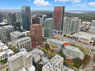 Experience urban living at its best in this beautifully remodeled Downtown Bellevue condo. This 1-bedroom plus den home features a spacious primary suite with large closets and an ensuite bathroom, an open layout with a gas fireplace, and a private deck. The kitchen shines with granite countertops, newer cabinets, and stainless steel appliances. Enjoy the convenience of a full-sized washer and dryer, two parking spots in a secure garage, and a private storage unit. HOA dues include water, sewer, garbage, and gas. Ideally located within walking distance to Bellevue Square, The Bravern, restaurants, shops, parks, and the future light rail station. No rental cap allows for optimal flexibility in the ever growing downtown Bellevue neighborhood!