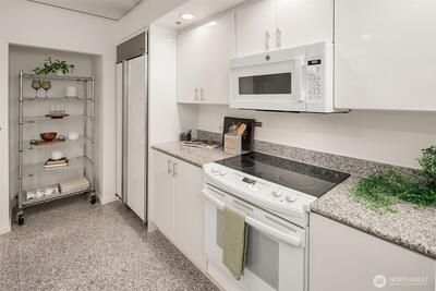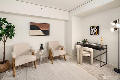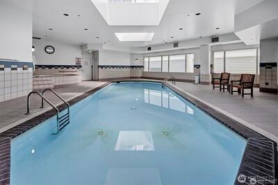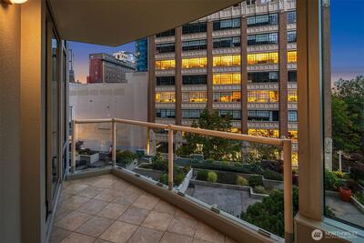 Best value available in Downtown Seattle! Spacious 1BR+DEN, which could double as a 2nd BR w/ its own bath. Steps to Pike Place & the revamped waterfront. This SW-facing home is drenched in natural light through oversized windows framing tranquil views of the garden terrace & protected views of Elliott Bay, visible from both main room & bedroom. Features incl. Central A/C, newly refinished patio, Sub-Zero fridge, granite kitchen counters/floors, fresh paint/carpet, limestone entry. Versatile den w/pocket doors doubles as guest room/flex space. Primary BR offers full en-suite bath + separate 3/4 bath for guests. Amenities: 24/7concierge, indoor pool/spa, gym, event room, view terrace. Garage parking. No rental cap & well-managed building!