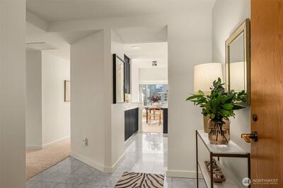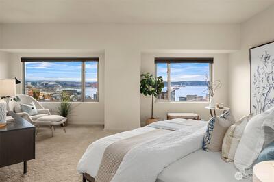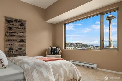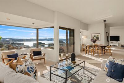 Presenting the Bay Vista- distinctive and elegant urban living at its finest. Wrapped in extraordinary views from Puget Sound to Mt. Rainier to our iconic Space Needle. This 2300+ sq. ft. SE facing home delights at every turn. The flexible lay-out enhances the spaciousness & views from living to dining to family room w/2 south facing balconies. With 3 bed/3bath + modern, bright updated kitchen prepare to live, work and enjoy life at the Bay Vista. Outdoor amenities on the 6th fl. plaza include sport court, walking path, planting gardens, & outdoor kitchen /fireplace to enjoy those views! Don't miss the pool/hot tub, sauna & guest suite. Two parking spots/two storage units. Impeccable 24/7 concierge service. Downtown living at its best.