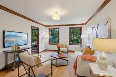 Experience timeless elegance at Historic Park Lane Place, a Capitol Hill Art Deco gem. This west-facing 2nd-floor condo blends historic charm with modern sophistication: rich hardwoods, original moldings and doors, vintage tile bath, and a fully renovated eat-in kitchen. Thoughtful floor plan features a walk-in closet, spacious full bath, and inviting living room. Enjoy private off-street parking, a beautifully maintained building with onsite manager, lush garden courtyard, and inviting common spaces. Additional storage in the basement plus dedicated off-street parking. Pet-friendly, secure, and sited on a corner lot with 97 Walk Score, ideally located to transit, shops, bars, and the Capitol Hill core —urban living at its finest.