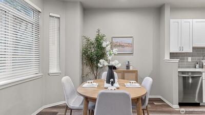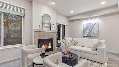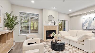 New paint, wood flooring & upgraded lighting just completed! Other recent updates include stainless steel appliances, fully renovated kitchen, refreshed bathrooms & new blinds. Main floor features a walk-through kitchen, formal dining area, and spacious living room with cozy wood-burning fireplace. Sliding door leads to private patio overlooking serene greenspace. Primary suite includes vaulted ceilings, en-suite bath & walk-in closet. Detached one-car garage. Prime location minutes to Microsoft, transit, Hwy 520 & downtown Redmond. No rental cap.