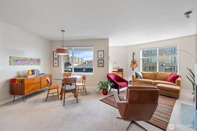 2 secure garage parking spaces!! One equipped with an electric vehicle hookup ready for your car charger. Enjoy the privacy & quiet of a top-floor unit. This large & spacious home with open kitchen layout maximizes the square footage. Abundance of large windows brings in natural light. The deck provides a private outdoor space to relax. Canal Station is a fantastic building with so many amenities–fitness room, lounge, hot tub, sauna, onsite management, package room. Ballard is one of Seattle’s most distinctive & desirable neighborhoods, combining maritime heritage w/ modern lively urban scene. So many trendy restaurants, cafes, craft breweries, & groceries within walking distance.No assessments and no rental cap.Amazing value at this price!