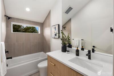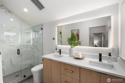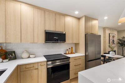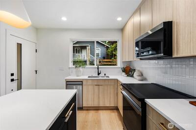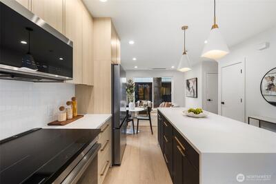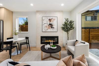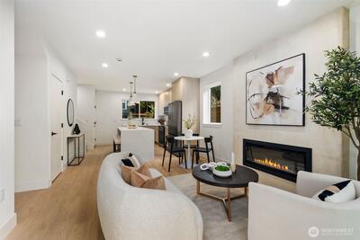 Rare find in the Hillman City neighborhood. Nestled in the back. Has its own 1 car garage and plenty of street parking. Lots of upgrades and features. Open floor plan with abundance of windows. Kitchen with quartz counter tops and full backsplash. Stainless steel appliances. Recessed lighting throughout. Great room concept with dining room and fireplace. Fireplace for those cozy days. Split systems for efficient heat and A/C. Luxury vinyl planks throughout. Dual sinks in primary bath. Vaulted ceilings in 2nd floor. Tile in bathroom floors, walls, tub and shower surround. Check out this modern beauty.