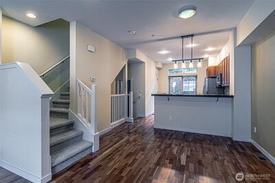 Perfect lock it & leave it lifestyle! Close to the Arts District, UW Tacoma Campus, Brewery District & commuter station. Enjoy high ceilings, bright and open floor plan with tons of natural light. Curl up in front of the fireplace on cool NW days or relax on the private patio and catch the summer breeze. Kitchen has room for all your cooking needs with tile counters, lots of storage space, pantry, pendant lighting and more! Two bedrooms upstairs each with their own full baths attached. Primary Suite has vaulted ceilings & two closets. Park off the street in your own garage, high ceilings offer great storage options for the kayaks & bikes. Close to great eateries & shopping.