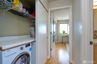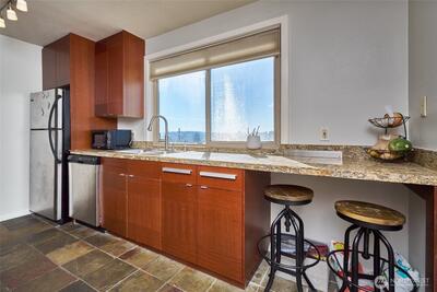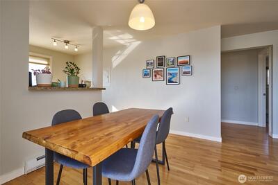 Experience iconic Fremont living in this bright top-floor corner 2-bedroom, 1.5 bath condo featuring panoramic views of Lake Union, Mt. Rainier, and the Seattle Skyline. With approximately 929 Sq. Ft. of updated living space, this well-maintained unit offers hardwood floors throughout the living space, granite kitchen counters, stainless steel appliances, and cozy gas fireplace. Enjoy in-unit laundry ample storage, private garage+ one assigned parking sp. The small, pet-friendly HOA covers utilities and cable, making maintenance easy and affordable. Located steps from Fremont dining, shopping, and entertainment, with no rental cap and excellent community management, this is a rare opportunity in one of Seattle's coveted neighborhoods.