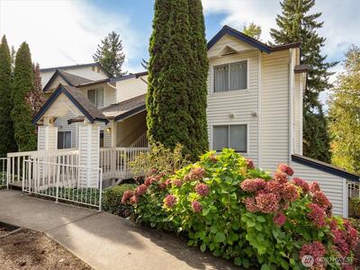 Well-designed 2-bdrm/2-bth unit with very private west facing covered deck with access to the shared green space. This home features beautiful/durable luxury vinyl throughout the home. The kitchen, with its lovely patterned backsplash, is open to the dining area/living room w/ wood burning fireplace. Both bthrms have been remodeled with a contemporary feel using high quality finishes. Range, fridge & washer/dryer all come with the home. Enjoy community outdoor pool, hot tub & clubhouse. Unbeatable convenience. Only 2 blocks to I-405 on-ramps & so close to the Seahawks training facility, Downtown Bellevue, Newcastle, The Landing, Southcenter and SeaTac Airport. Pet friendly. No rental cap. Great investment for a low maintenance home!