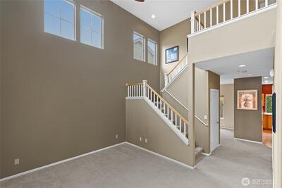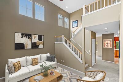 Beautiful stand-alone craftsman-style home in a well-maintained community. Formal living and dining rooms set an elegant first impression, with vaulted ceilings in the entry and living room adding scale and light. The kitchen flows into a dining nook and family room and then out to a fully fenced backyard backing to a greenbelt for privacy and an evergreen backdrop. The primary suite includes a 5-piece bath. Central A/C and a sprinkler system add comfort and ease. Enjoy a covered front porch, nearby walking trails, and effortless access to I-5, Hwy 167, transit, Sea-Tac Airport and Southcenter.