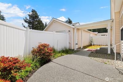 One-level living in the heart of UP! Warm hardwoods extend through an open concept living room with fireplace and dining room with tray ceiling. The kitchen, with sun-filled dining nook, has expansive countertop space, cabinets with pull out shelving and new appliances. Primary bedroom is tucked away for privacy and features a walk-in closet and 5-piece bathroom with skylight. Additional bedrooms, one with French doors, offers flexibility for guests or a home office. Enjoy warm summer days in the beautifully landscaped yard with patio, perfect for dining al fresco. Gated community, two-car garage with breezeway. Prime location to trails, Chambers Bay, retail and highway access. Mortgage savings may be available for buyers of this listing!