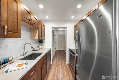 Recently remodeled one level condo in a true Mid-Century building offering 2 bedrooms/ 2 baths. The kitchen has quartz countertops and stainless steel appliances and flows seamlessly into a the dining area. The extra large living room opens onto big, shaded balcony perfect for enjoying the outdoors. NO RENTAL CAP. Located near Magnolia Village and Whole Foods Market, this home also provides easy access to parks, shops, and the scenic Elliott Bay Trail, with Downtown Seattle, SLU and Ballard just minutes away. Parking is included, ensuring hassle-free urban living. Well regarded schools are nearby. Lower interest rate financing maybe available.