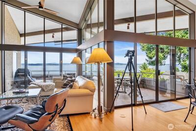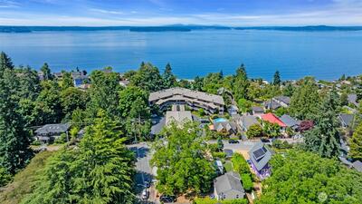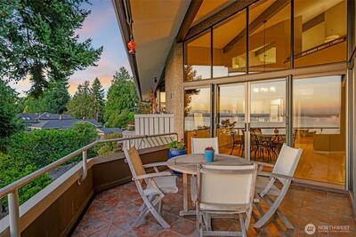 Located in a highly sought-after community in West Seattle, this rare 3-bedroom top-floor penthouse at Seaview Terrace is your serene getaway with breathtaking views of Puget Sound and the Olympic Mountains. The covered deck and double sliding doors seamlessly blend the kitchen and living room for an ideal entertaining space. Enjoy the dramatic floor-to-ceiling windows, vaulted ceilings, a cozy gas fireplace and elegant bamboo floors. Wine enthusiasts will love the custom 280-bottle wine fridge.The complex offers fantastic amenities including an outdoor pool, hot tub, sauna, workout room and a charming historic cabana. The penthouse also includes two storage units and two covered parking spaces for added convenience.