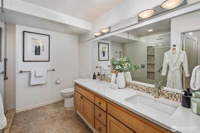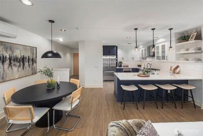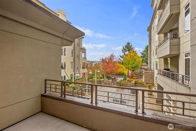Gracious living in the heart of downtown Kirkland! A freshly painted, newly carpeted exquisite 2 bedroom , 1.75 bath. Updated kitchen, primary bath, hardwood floors & AC. Perfectly located over the garden courtyard w/ S. facing city views. Generous study that doubles as den. Gas fireplace creating cozy living & dining room. Below rental cap. Guest rental rooms available. 2 storage lockers.Well run HOA. Building recently painted inside & out. New roof & courtyard garden redesign. Pets allowed subject to restrictions. Minutes from transit & downtown shops & restaurants. Google a block away. 96 Walk Score. The best way to live in downtown Kirkland!
