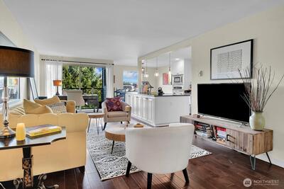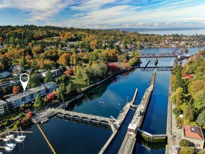 Sunset views and waterfront vibes—what more could you ask for? A rare waterfront retreat in Magnolia with postcard-perfect views of the Ballard Locks and glowing sunsets. This light-filled condo combines comfort and style with new flooring and a redesigned kitchen that opens seamlessly to the dining area & living room. A large slider to the covered deck is the perfect spot to unwind and watch the world go by. The bedroom has a cedar lined custom built closet that spans a whole wall! Tucked within a quiet, well-run 30-unit community featuring a pool, sauna, elevator, and secure parking, this home offers a lifestyle that’s both relaxed and connected. Pet-friendly, and close to parks, trails, and city hotspots.