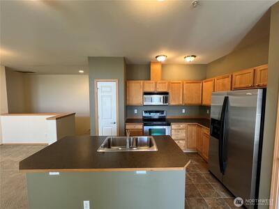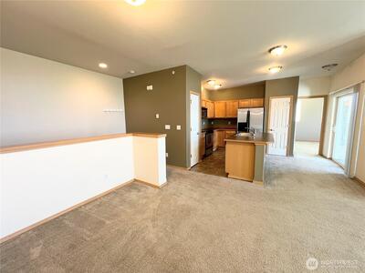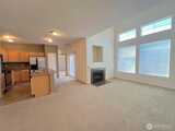 Open concept 2-bedroom, 1 3/4-bath, 1021 sq. ft. condo in DuPont. Features include a living room with a fireplace, large windows for natural light, vaulted ceilings, a dining area, and a kitchen equipped with all stainless steel appliances, a kitchen island with a breakfast bar, and a closet pantry. The primary bedroom has an attached bath and a walk-in closet. Stacked washer and dryer are in the unit. Enjoy a nice covered deck for outdoor entertaining, along with an extra storage closet and a 1-car attached garage. Conveniently located just minutes from JBLM with easy access to I-5 and close to miles of trails and parks.
