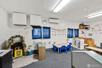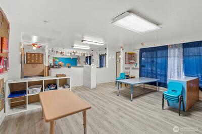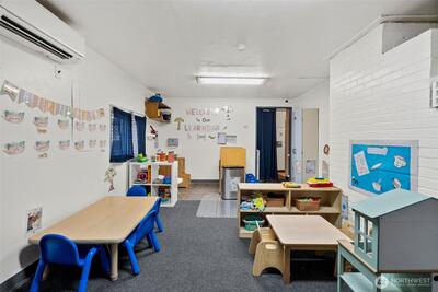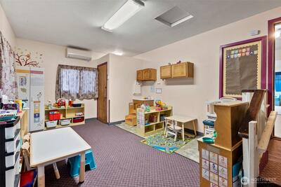 Charming Daycare Opportunity! This fully-equipped daycare facility includes both the building and a spacious shop on a large lot, complete with a playground. The interior features multiple bright and cheerful learning areas, a fully functional kitchen, and a convenient laundry room. Outside, the fenced yard offers a safe play space. This is a fantastic turnkey business opportunity for anyone looking to invest in childcare. Don't miss out on making a difference in a thriving community!
