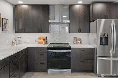 Private Oasis in quiet Olympic Hills location. Brand new townhome condo situated on a 2,963 sq ft fully fenced and gated lot! Large Trex Enhance deck, garden space, plenty of outdoor play area for Fido and Friends! The house's open layout lends itself to a wide array of options for the day to day, cozy nights at home and entertaining small and large groups. Electric remote controlled fireplace with heat feature and adjustable colors and flame. Whirlpool appliances. Primary bath has oversize soaking tub and shower. Convenient powder room on main floor. Full size washer/dryer hookups. Pet friendly.