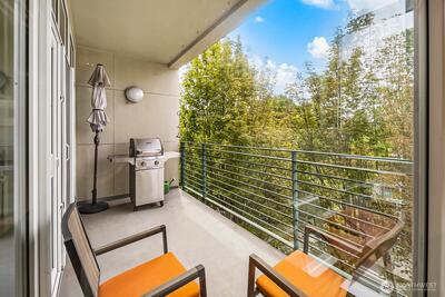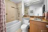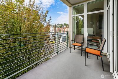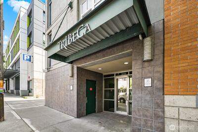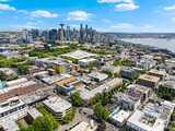 Flooded with natural light, this top floor corner unit at Tribeca is the ultimate in-city retreat. Step inside to soaring ceilings, floor-to-ceiling windows, exceptional floorplan. Prepare meals in a chef's kitchen. Relax and entertain in wide-open living and dining spaces with doors to private BBQ deck. The bedroom wing features 2/2 including primary suite w/ walk-in closet, black-out shades, private bath. You'll love the Central AC, gas fireplace, electronic blinds, bamboo hardwoods, WFH office nook, big laundry room, 2 secure parking spots. Enjoy Space Needle + city views from roof deck. Great Q.A. location: walk to local restaurants, cafes, shops, Kraken games, the waterfront, more. Easy access to SLU + downtown Seattle. No rental cap.