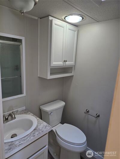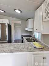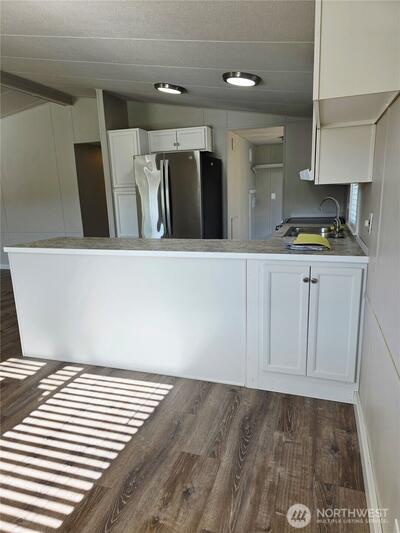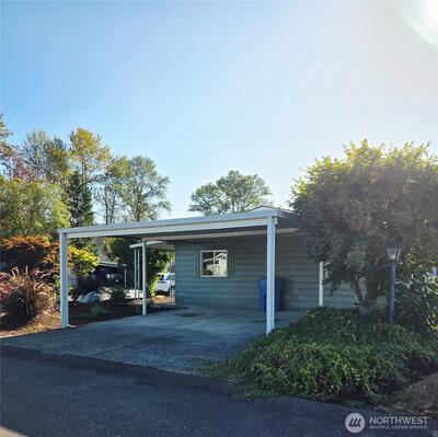 Discover the perfect mobile home haven in the peaceful 55+ community of Mountain View estates. Completely remolded and move-in-ready, this home boasts vaulted ceilings, elegant quartz countertop's in both the kitchen and bathrooms, and brand-new stainless-steel appliances. Nestled on a spacious corner lot, it offers two-car covered parking, a large shed with electricity, and the breathtaking views of Mt. Rainier. Enjoy, comfort, and scenic beauty - all in one exceptional home.