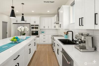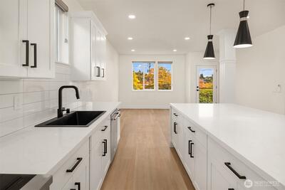 Modern Luxury in Columbia City! Step into sophistication & comfort in this beautifully crafted 6-Bed, 4-Bath home. Thoughtfully designed w/ abundant natural light, vaulted ceilings, & refined finishes. Chef-inspired Kitchen impresses w/ quartz counters, waterfall island, walk-in pantry, double ovens, & sleek stainless steel appliances. Designed for modern living, enjoy dual laundry rooms, a flexible Bonus room, & 2 inviting covered patios perfect for entertaining. Main Lvl offers 2 Beds & full Bath ideal for guests or multi-generational living. Ample parking w/ a 2-car garage plus 4 driveway spaces. Perfectly positioned across from Safeway & Cheryl Chow Park, & just minutes to Link Light Rail, PCC Market, & a lively restaurant scene.
