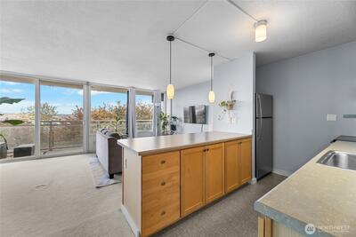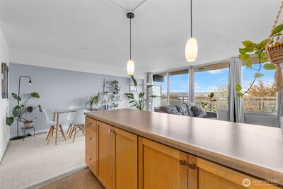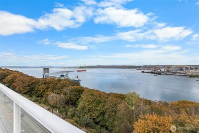 Prime location in Sky Terrace! Conveniently near the entrance, no stairs when coming from Broadway. Bright and open with windows overlooking Puget Sound, lush trees, and stunning Mount Rainier views from both the balcony and sliding window. Enjoy year-round comfort and easy access to Tacoma Light Rail, Wright Park, Stadium Thriftway, and neighborhood favorites like McMenamins and Antique Row. The rooftop patio offers 2700 sq ft of outdoor space with panoramic mountain, bay, and city views, perfect for BBQs or relaxing with friends. Includes assigned, gated parking and low HOA dues.