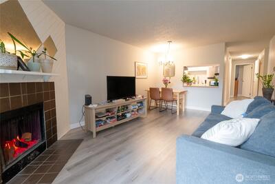 Beautifully updated 2-bedroom, 2-bath condo located in Auburn’s sought-after Bye the Green gated community! This ground-floor unit shines with LVP flooring & remodeled kitchen & bathrooms. The open living area features a cozy wood-burning fireplace & access to a private patio overlooking the lawn and community pool, plus convenient outdoor storage. The kitchen is fully outfitted with stainless steel appliances. Monthly dues cover water, sewer, garbage, landscaping, & common area maintenance for carefree living. The pet-friendly community allows 2 dogs/cats of any size & offers one assigned parking space (#11). Enjoy resort-style amenities including an outdoor pool, indoor hot tub, sauna, community room, large open lawn & 2 fenced dog parks.