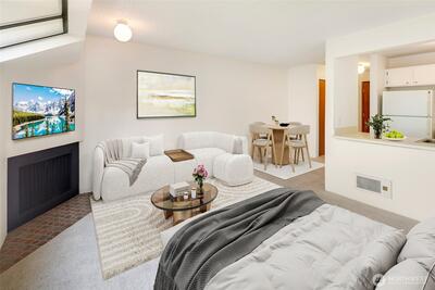Top-floor studio in a quiet, well-maintained North Seattle building—perfectly situated near restaurants, cafés, shops, parks, and transit. Enjoy easy access to Northgate, the University of Washington, and I-5. This bright, open space overlooks the peaceful side of the building and features great natural light year-round. Secure lobby entry, protected mailboxes, private storage, and dedicated bike storage add everyday convenience. Includes dedicated off-street parking spot plus guest parking. No rental cap—ideal for both homeowners and investors. Shared laundry room just steps away. A fantastic opportunity in a desirable North Seattle location!