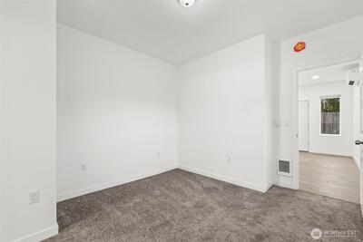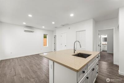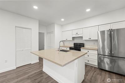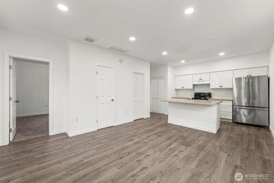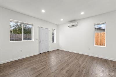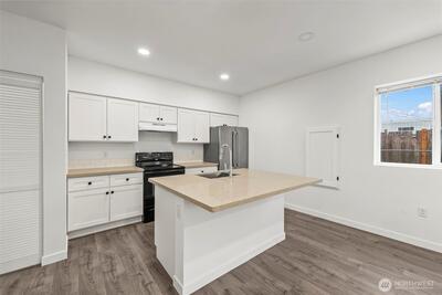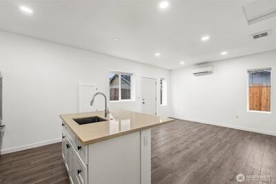 Enjoy modern living in this beautifully finished 2-bed, 2.5-bath condo featuring two parking spaces and a fully fenced yard—a rare find! The open-concept main level offers a stylish white kitchen with quartz counters, stainless appliances, electric range, and garbage disposal. Stay comfortable year-round with a mini-split heating & cooling system. Each bedroom features its own full ensuite bath and spacious closet, while a convenient half bath serves the main living area. Washer and dryer are included for true turn-key convenience. Located close to shopping, dining, and local amenities, Just minutes to i5, downtown & Tacoma light rail (St Joseph Station). This home combines comfort, efficiency, and low-maintenance living!