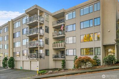 This exceptionally attractive & remarkably spacious 1800 Sq Ft condominium shows beautifully. Lovely views of the ship canal & landscapes to the north from living rm, dining rm & deck. Quiet elegance abounds. Welcoming frml entry opens to the grand sunken living rm. Entertainment size dining rm. Chef's kitchen presents quartz countertops, top tier stainless steel applnces, custom cabinetry & informal dining. Abutting family rm w/sliding glass drs opening to the view deck. Inviting primary bedrm shows a luxurious bath & grand walk-in closet. Beautiful bamboo flrs thruout. Tons of natural light grace this hme! Huge 2-car tandem garage +storage. Amenities include a shop, swimming pool, clubhouse w/kitchen, fitness rm, pool table, games & sauna