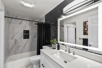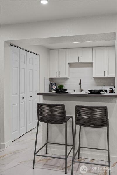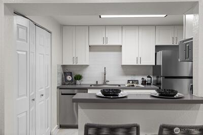 Beautifully updated 2-bed, 1-bath condo in a prime Redmond location near Bella Bottega, Lake Sammamish, Microsoft, Google, and many others. Key interior feature includes 3-zones of heated floors: living room, kitchen, and bathroom. Recessed lighting, and fresh paint throughout. The kitchen also offers new cabinets, garbage disposal, and stainless-steel appliances. In-unit laundry available with brand new appliances and water heater. Bathroom fully remodeled with new tile, vanity, and toilet. Bedrooms have new baseboard heaters and closet cabinets, so you never run out of storage. Fireplace refreshed with modern stone tile. Move-in ready and close to all amenities!