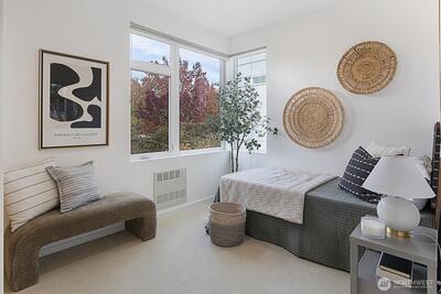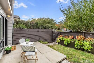 Discover modern living in this 2 bedroom + office nook, 2.25 bath townhome in Cap Hill, where style meets comfort in a vibrant setting. Open floor plan connects living & dining spaces, highlighted by a dramatic roll-up wall that welcomes the outdoors in. Modern kitchen features quartz counters, SS appliances, and generous island with breakfast bar. Expansive windows fill the interiors with natural light. Modern, chic architectural details throughout. Primary suite offers a cozy retreat with en-suite bath and generous closets. Second bedroom and bathroom, and laundry all on the same floor. Versatile lower-level flex space adapts to your lifestyle, while attached garage adds convenience. Easy access to DT Seattle, shops, dining, and freeways.