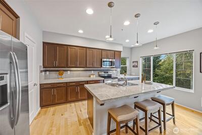 This gorgeous 3 bd 2.5 bth end unit residence in sought after Villas at Mondavio is truly special! Prime location surrounded by beautiful greenbelt & next to Sammamish River Trail path!Steps to Dntn Redmond, Town Center, shopping & dining. EZ commute to MSFT, Meta,Google & Amazon.Spacious & sunlit main level boasts beautiful maple hardwood floors,gourmet chef's kitchen w/endless cabinetry,granite countertops,tile backsplash,granite island,breakfast bar,ss appliances & pantry.Large living room w/cozy fireplace is perfect for those cold Winter days!Upstairs Owner's suite w/spa-style bth,dbl vanity,granite countertop,tile floor & WI tile shower.2 addl bds & 2nd bth up!Downstairs bonus/flex/media rm! 2 car garage. Pre-inspected & home warranty!