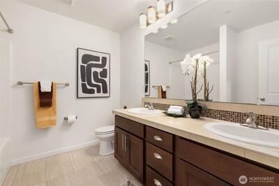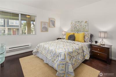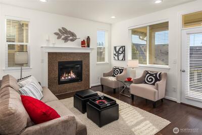 Exceptionally crafted end-unit townhome in the coveted View Ridge community! The expansive island kitchen is a standout, featuring slab granite countertops, stainless steel appliances, & abundant cabinetry ideal for both everyday living and effortless entertaining. A gas fireplace adds warmth to the open concept living area, bathed in natural light and seamlessly extends to a private deck and patio overlooking the beautifully landscaped courtyard. Luxurious primary suite boasts serene views, a spacious walk-in closet, & a spa-inspired ensuite bath. Additional highlights include A/C, two-car garage w/ Level 2 charger, nationally recognized schools & neighborhood transit access to Microsoft & Meta + Park & Ride express to Bellevue & Seattle!