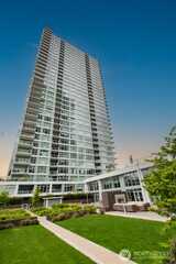 Luxury living at Insignia in this 1 bedroom + den condo. High end kitchen that is open to living and dining rooms. Lovely hardwood floors and carpeted bedroom. In unit washer & dryer and lots of closet space and storage locker as well! Balcony for your plants and table & chairs. Insignia is a unique condo because of all the amenities and community activities. 24hr concierge, indoor pool, hot tub, sauna, steam room, fitness center, yoga and Pilates studio, theater, 41st floor lounges and 7th floor park with BBQs! It even has a car wash and pet spa area. 2 pets allowed. Unique community activities include holiday parties, ice cream social, 70's party, cooking classes, game nights and more.