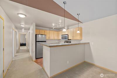 Welcome to La Reve — a beautifully maintained, pet-friendly community in the heart of Downtown Bothell! This top-floor condo offers 3 bedrooms and 2 bathrooms, including a true primary suite complete with a walk-in closet and private bath. Enjoy a light-filled, open layout with your own storage closet conveniently located right next to the front door and two designated parking spaces. Experience the best of Bothell living with a walkable lifestyle — just moments from restaurants, shopping, trails, and parks. Located in the highly rated Northshore School District, this home makes an excellent long-term investment or a perfect place to call home. No rental cap and a quiet community atmosphere make this one a rare find!