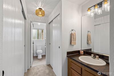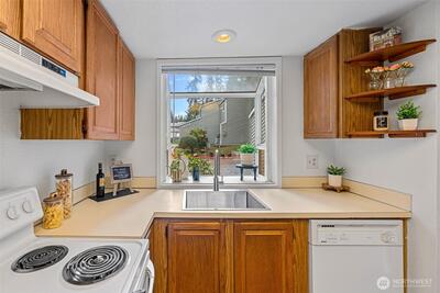 Discover this inviting 3-bedroom, 1.5-bath unit in desirable Olympic Village-a rare opportunity in this community where homes seldom come available. Featuring new LVP flooring downstairs, fresh carpet upstairs, new paint, & updated lighting throughout. Cozy up by the wood-burning fireplace or relax on your peaceful backyard patio or upper deck backing to tranquil greenspace. Practical amenities include a spacious 1-car garage w/storage & additional parking spaces. HOA covers sewer, water, & garbage. Functional kitchen offers great potential for updates & personalization. Located in award-winning Lake Washington SD, minutes from Totem Lake shopping & dining. Easy access to I-405, parks, & everything Kirkland has to offer! Pre-Inspected!