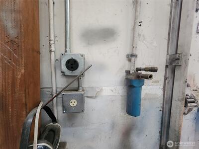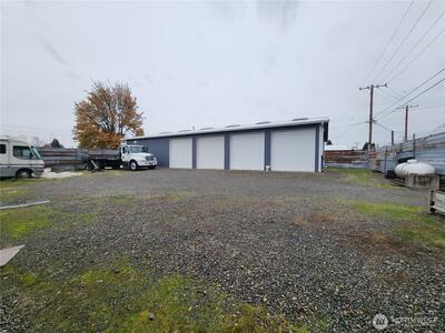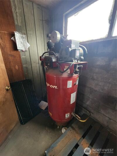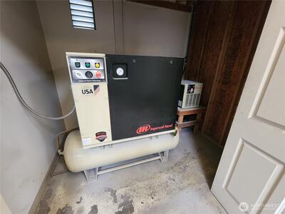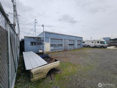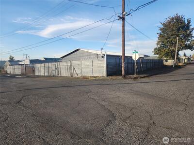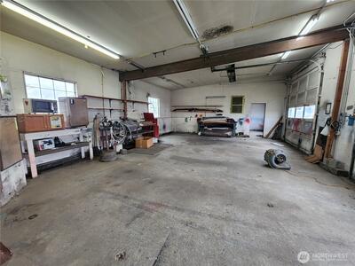 Two commercial buildings on a .3 acre corner lot. Lot is fully fenced. 38 x 72 clear span building in excellent condition built in 2016 is insulated and heated with ceiling mount propane heater. 220V power and Ingersoll Rand Advanced Technology Rotary Screw Air Compressor plumbed to 6 dual valve stations. Bathroom and wash station also. Metal siding and roofing. The 2nd building is 24 x 60 built in 1970 also has compressor system plumbed, bathroom, propane heat, office space and a makeshift paint booth. Security fenced with large rolling gate.