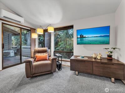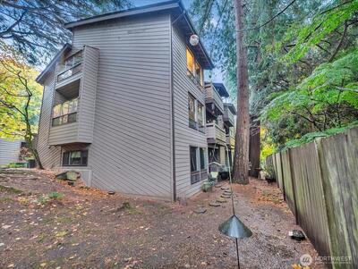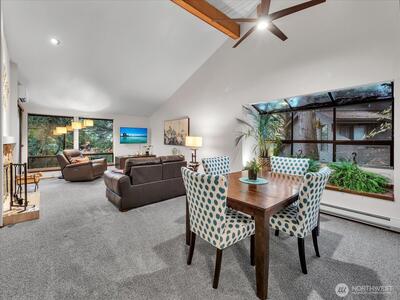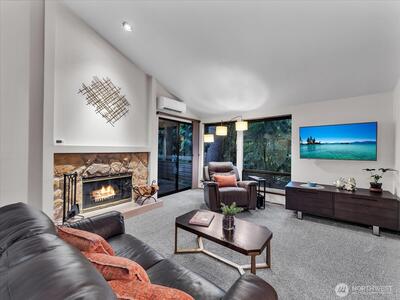 Welcome home to this serene top-floor end unit tucked in the trees of desirable Lake Forest Park—just 20 minutes from Seattle! Enjoy effortless commuting with the new light rail station less than 10 minutes away. Thoughtfully updated with new appliances, W/D, replaced window panes + custom blinds, newer water heater, and energy-efficient mini-split A/C. The vaulted ceilings, cozy wood fireplace, and private deck overlooking lush greenery create the perfect retreat. Includes covered parking and two storage units for convenience. The well-managed HOA recently replaced all roofs and has no rental cap—live in comfort or invest with confidence. Located in the award-winning Shoreline School District, close to Lake Washington, parks, and shopping.