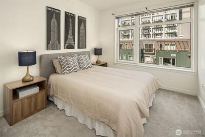 Luxury Living at The Vine – Just Two Blocks Above Seattle’s Revitalized Waterfront Experience the best of city living in this spacious 2-bedroom, 1.75-bath condo with soaring ceilings, walls of windows, and a private balcony. The open-concept layout and modern kitchen with bar seating make it ideal for both everyday living and entertaining. The Vine offers resort-style amenities including expansive owners’ lounge with stunning views, rooftop deck & guest suite overlooking Elliott Bay, well-appointed fitness center, 24-hour concierge service, EV charging stations, and car wash area. With an incredible Walk Score, you’re moments from the Elliott Bay Trail, Pike Place Market, transit, and more.