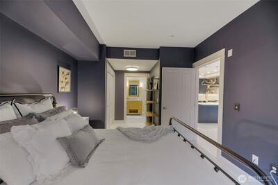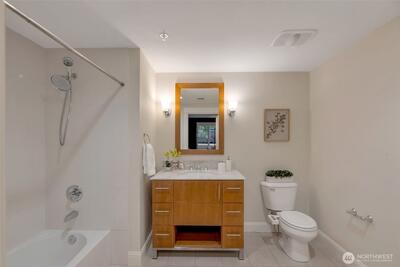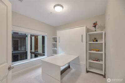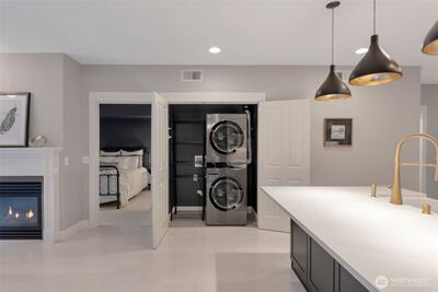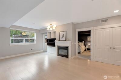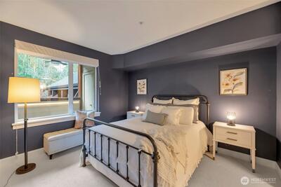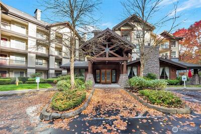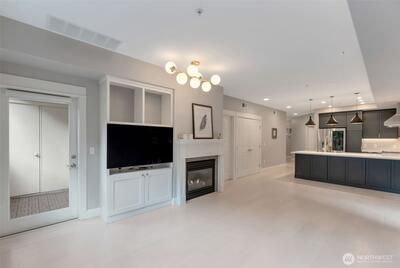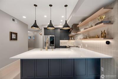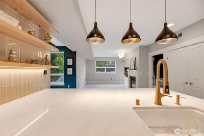 Stunning remodeled 2 bed/2 ba condo in the desirable Monohon complex. Over $110K in recent updates. Soaring 9' ceilings & white-washed engineered hardwoods enhance the open-concept design. Stunning chef's kitchen w/ custom cabinetry, quartz counters, elegant backsplash, floating shelves w/ lighting, & high-end appliances including a gas Bluestar range & Zephyr hood. Recessed lighting, & updated designer fixtures. Newer heat pump, water heater, washer & dryer. Enjoy a cozy gas fireplace, private deck, & details like a Murphy bed/desk combo in the 2nd bed. One underground parking space & storage unit. HOA dues cover water, sewer, garbage, gas & more! Unbeatable Issaquah location—minutes to I-90, parks, Lake Sammamish, and downtown amenities.