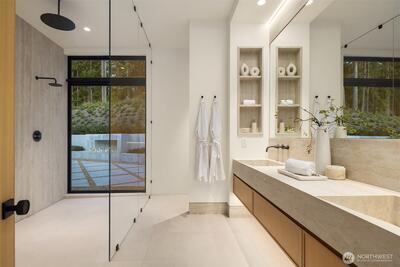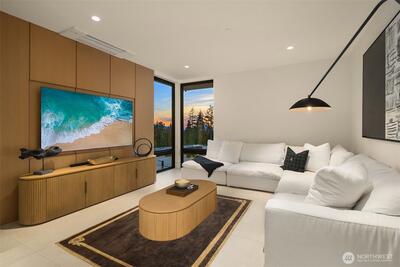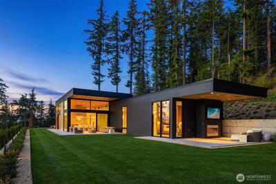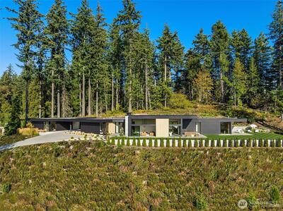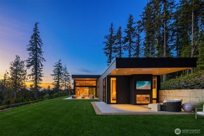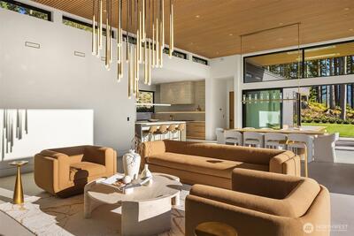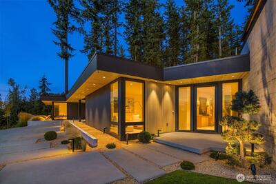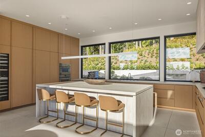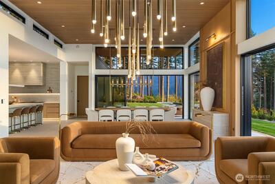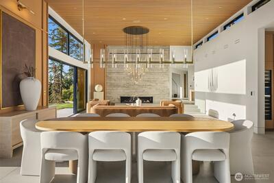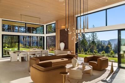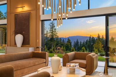 Privately gated on 2.2 pristine acres in Issaquah’s elite Grand Ridge, this architectural statement designed by acclaimed Wittman Estes and constructed by Baluco Homes is a masterclass in modern Northwest design, craftsmanship, and landscape integration. Curated precision blends steel, concrete, and expansive commercial-grade glass to frame sweeping cinematic Cascade Mountain vistas while dissolving the boundary between indoors and nature. Low-slung rooflines and expansive architectural overhangs create dramatic horizontal lines while sheltering walls of glass and ultra-premium sliding and pivot doors that open the home completely to the outdoors. Inside, the sculptural great room unfolds beneath a statement chandelier. Soaring volumes are anchored by board-formed concrete feature walls and extensive custom millwork. Simplicity paired with performance, featuring state of the art surfacing, handcrafted plumbing fixtures by Watermark, and a professional appliance suite by Gagge