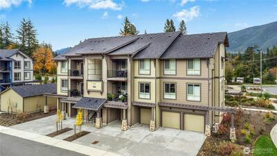Welcome to Timberstone! This stunning like new corner-unit condo combines modern style, sweeping views & an unbeatable location. Only available due to work relocation & previously lived in part time. It showcases an open layout w/LVP flooring, 9 ft ceilings, mini split for heating/cooling, solid-surface counters, stainless steel appliances w/upgraded dishwasher & designer finishes throughout. Cozy mountain facing deck. Includes single car garage w/remote & designated parking space adding convenience. Direct access to the community park w/pickleball, volleyball, playground & a covered picnic shelter. Outdoor enthusiasts will love the proximity to the Snoqualmie Valley Trail & river. Just minutes to downtown North Bend's shopping and dining.