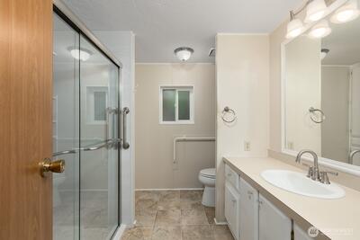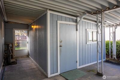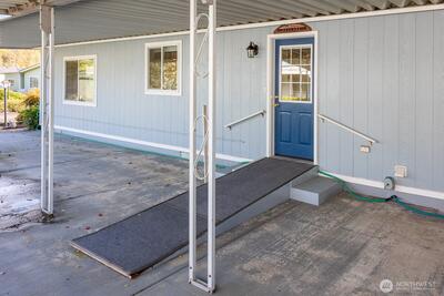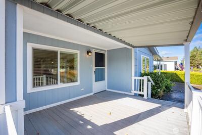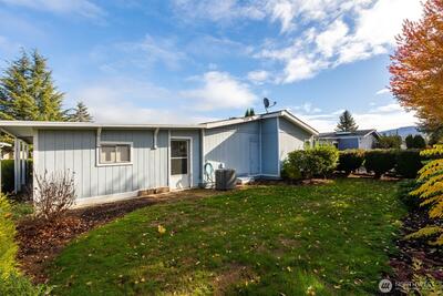 Welcome to this home in Mountain View Estates, a wonderful 55+ community in Orting! Featuring 2 bedrooms, 2 baths and a den, this fantastic home offers comfort and convenience throughout. Enjoy vaulted ceilings, a large primary suite with an updated walk-in shower, and a bright kitchen with white cabinets and stainless appliances. The home features a fairly new heat pump and exterior paint (approx. 5-6 yrs), covered front deck, private backyard, and a carport with parking for two plus a shed/workshop to tinker in. Ramp access from the carport provides easy entry. Community backs up to the Foothills Trail . . . easy access for walking or biking . . . enjoy the beauty of this wonderful area. Safeway, restaurants and more nearby. Check it out!