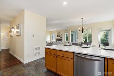 RARE OPPORTUNITY! WATERFRONT living in a serene, private setting. Welcome to Bothell's hidden gem. Bring your pup & walk out the door to the riverfront trail that will take you to downtown Bothell's bustling core. Parks, restaurants, shopping all nearby, but seemingly a world away when your walk through the door of this spacious 2 bed/2 bath/office condo. Remodeled kitchen with all newer stainless appliances, new LVP flooring, cozy gas fireplace & large primary bedroom with generous walk-in closet & en-suite bath. Private dock for river access. Across the river is the Burke-Gilman trail to walk or bike to Woodinville or Seattle. 2 parking spaces in gated garage & private storage just outside your door. This is a MUST SEE to appreciate!