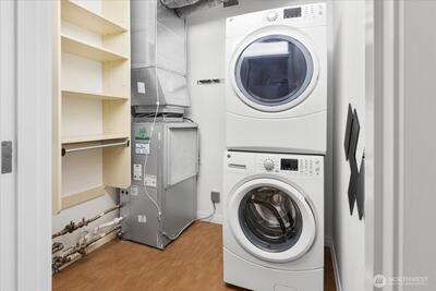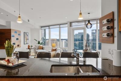 Experience luxury living at its finest with sweeping views throughout this stunning condo on the 31st floor of the Bellevue Towers. The spacious light-filled primary suite features a spa-inspired bath and expansive walk-in closet. The chef's kitchen is sure to impress with Viking appliances, panoramic city vistas, and custom cabinetry providing abundant storage. Enjoy year-round outdoor living on the covered patio. Spacious laundry room with built-ins and washer & dryer included. Indulge in resort-style amenities including a hot tub, sauna, steam room, cold plunge, fitness center, and much more. Secure garage parking. Just steps from Bellevue’s premier restaurants, parks, and shopping. Motivated seller. Don’t miss this opportunity!